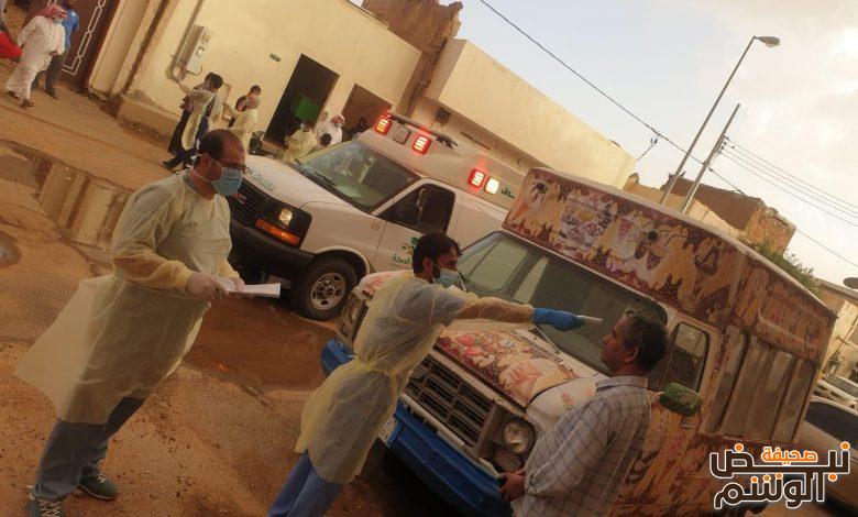 بتوجيه من مدير مستشفى شقراء الاخصائي / ياسر العطني للقطاع الصحي بالقيام بجولات رقابيه بالتعاون مع اللجنة المكلفة من سعادة محافظ محافظة شقراء للمسح الميداني والقيام بالفحص المبدئي والتوعية عن فايروس كورونا و تستهدف هذه الحملة سكن العمالة والاحياء المكتظة بالسكان حيث تم المرور هذا اليوم على ٤٣ موقع وفحص مبدئي وتوعية مايقارب ٤٠٠ عامل علما بأن هذه الحملة بدأت منذ خمسة اسابيع بشكل يومي ولا زالت مستمره .