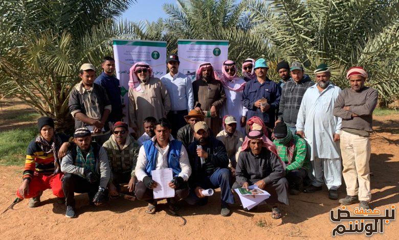 واستهدف ذلك تدريب العمالة على الكشف البصري والحسي على تواجد حشرة سوسة النخيل الحمراء وكيفية وطرق الوقاية والمكافحة بإستخدام الطرق الزراعية كما تم تدريبهم على كيفية تغطيس الفسائل قبل زراعتها بمشاركة عمالة المزارع .