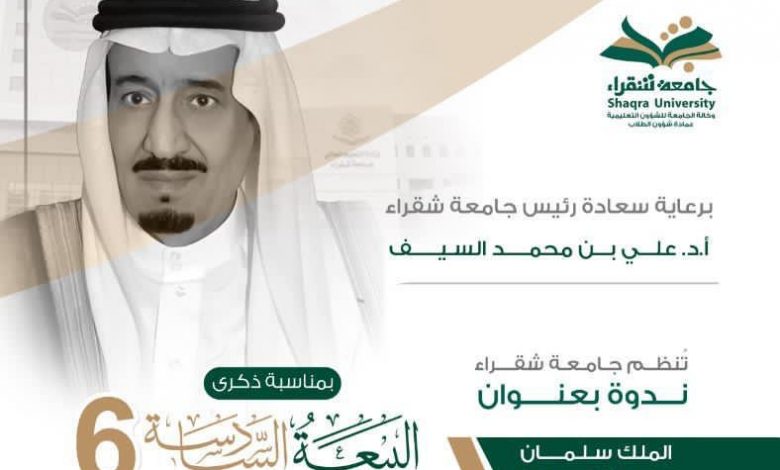 ندوة عن مسيرة الملك سلمان ومنجزاته تقيمها جامعة شقراء بمناسبة الذكرى السادسة للبيعة