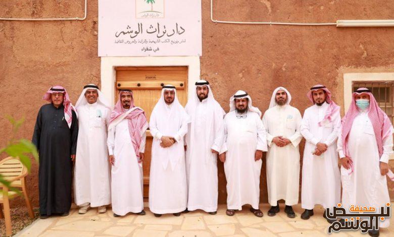 زار معالي .أ. د. عِوَض بن خزيم الاسمري مدير جامعة شقراء السابق يرافقه نجله عبدالرحمن و أ. باسم الجماز محافظة شقراء تلبية لدعوة تلقاها من أ علي دهل من منسوبي الجامعة وبحضور عدد من الاصدقاء والمحبين لمعاليه تم اقامة المناسبة في رياض قصور شقراء بمخيم الشيخ هاشم الشايع وحضوره ، وقد شارك أ. علي السبيعي وأ. محمد الحسيني وأ . عمر الهديان و عدد من اهالي محافظة شقراء في الترحيب واستقبال معاليه وبعد تناول وجبة الغداء توجه الجميع الى شقراء في زيارة لسوق حليوه التراثي تلبية لدعوة دار تراث الوشم وكان في استقباله ومرافقيه أ. د . عبدالطيف الحميد صاحب الدار و تجول معاليه والضيوف. في انحاء الدار وتم تبادل الهديا بهذه المناسبة. حيث قدم معالي الدكتور عِوَض بن خزيم الاسمري درع تذكاري الي أ.د. عبداللطيف الحميد صاحب دار الوشم والذي قدم بدوره نسخة كاملة من اصدارا ت الدار لمعاليه كما زار معاليه متحف شقراء في سوق حليوه و مكتبة الاديب عبدالكريم الجهيمان اديب المملكة المعروف رحمه الله ، وتجول معاليه في المكتبة واستمع الى شرح وافي عن محتويات المكتبه من امينها .أ ابراهيم اليوسف ، . وكان الجميع على موعد لزيارة الشيخ محمد الشائع في مزرعته. بالحسيان